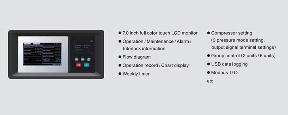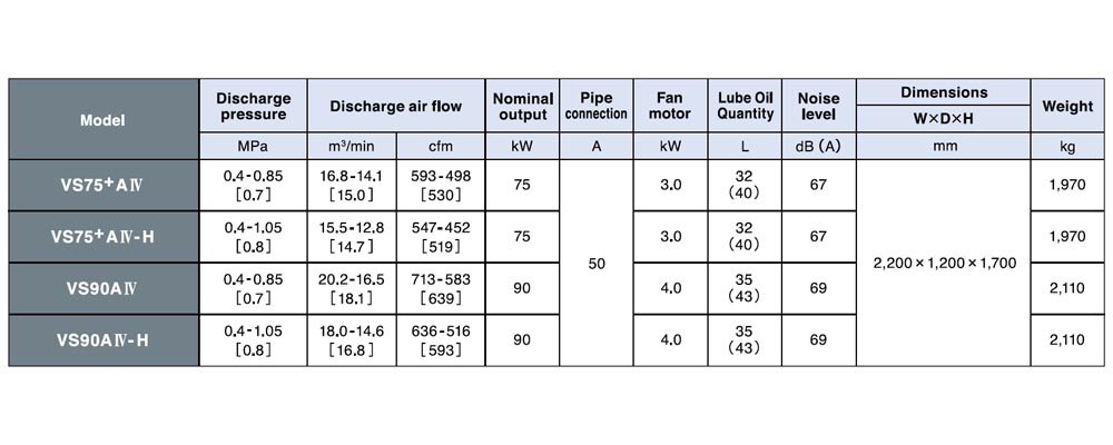 Main motor: 2pole, TEFC induction motor, IE4, Class F, Inverter drive, Electrical spec: 380/415V, 50Hz. The Maximum pressure for constant pressure control is up to 1.05MPa. ( ) for initial charge.